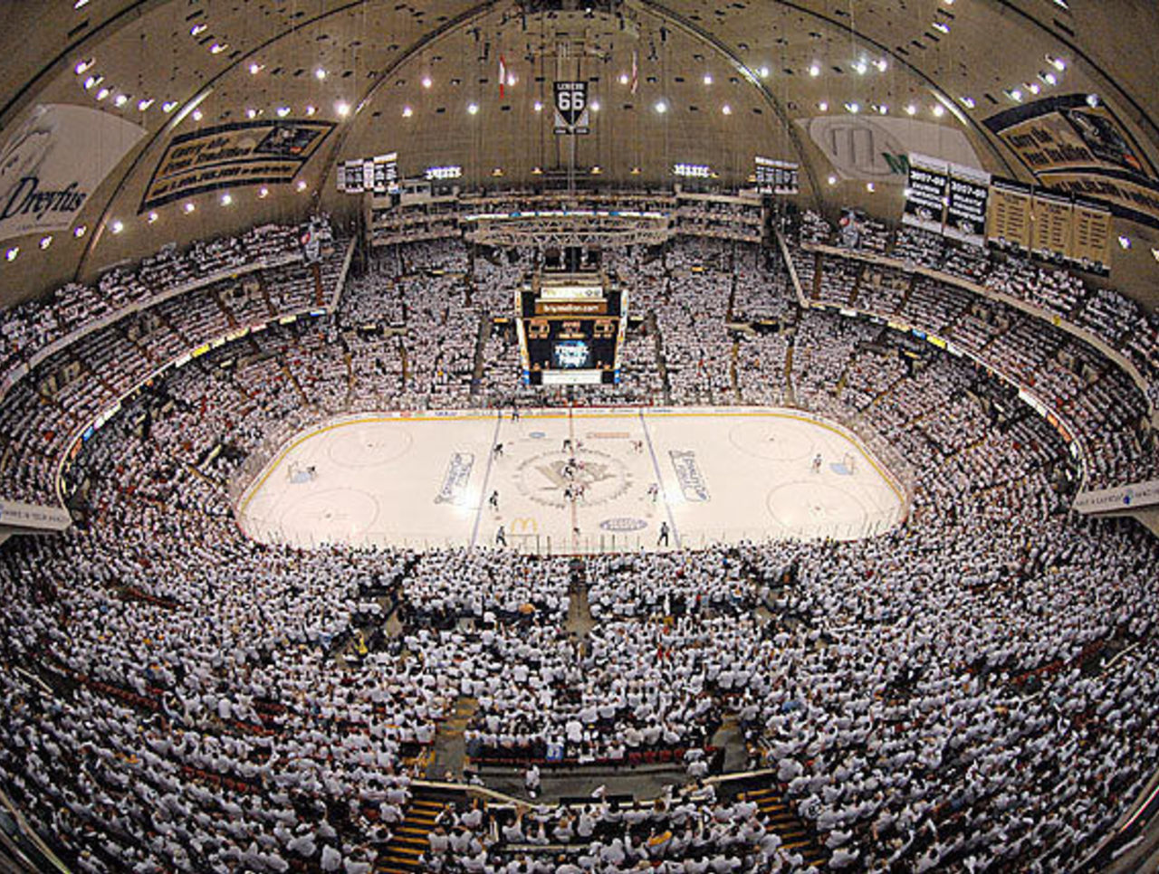 The Pittsburgh Penguins, hosting their playoff opening game Thursday against the Columbus Blue Jackets, are staging a "#GoldOut" at the Consol Energy Center. It's a hat-tip to the old "white outs" at Mellon Arena (which was popularly referred to as "The Igloo").