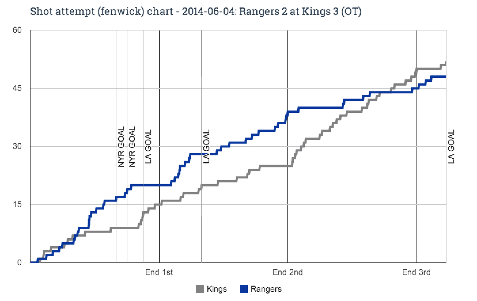 The Kings just seem to get better, and better, and better as games go on. They don’t roll over, as this shot-attempt chart attests:
