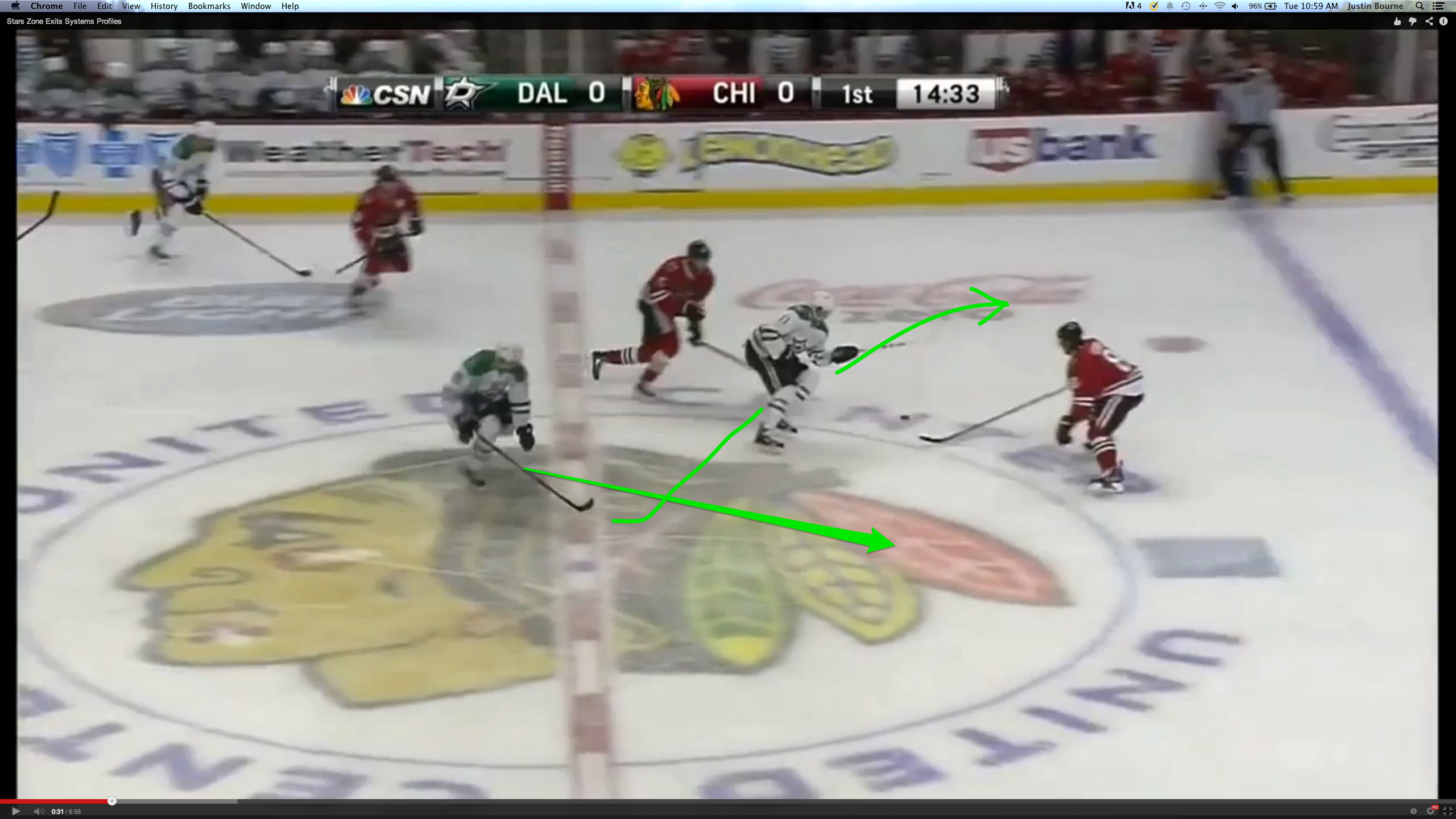 The play didn’t result in anything special, but Dallas did gain the zone with the puck thanks to good support from low, a short pass, and speed. And when the puck is coming from behind your net, as it was in that play, you’ll take that result every time.