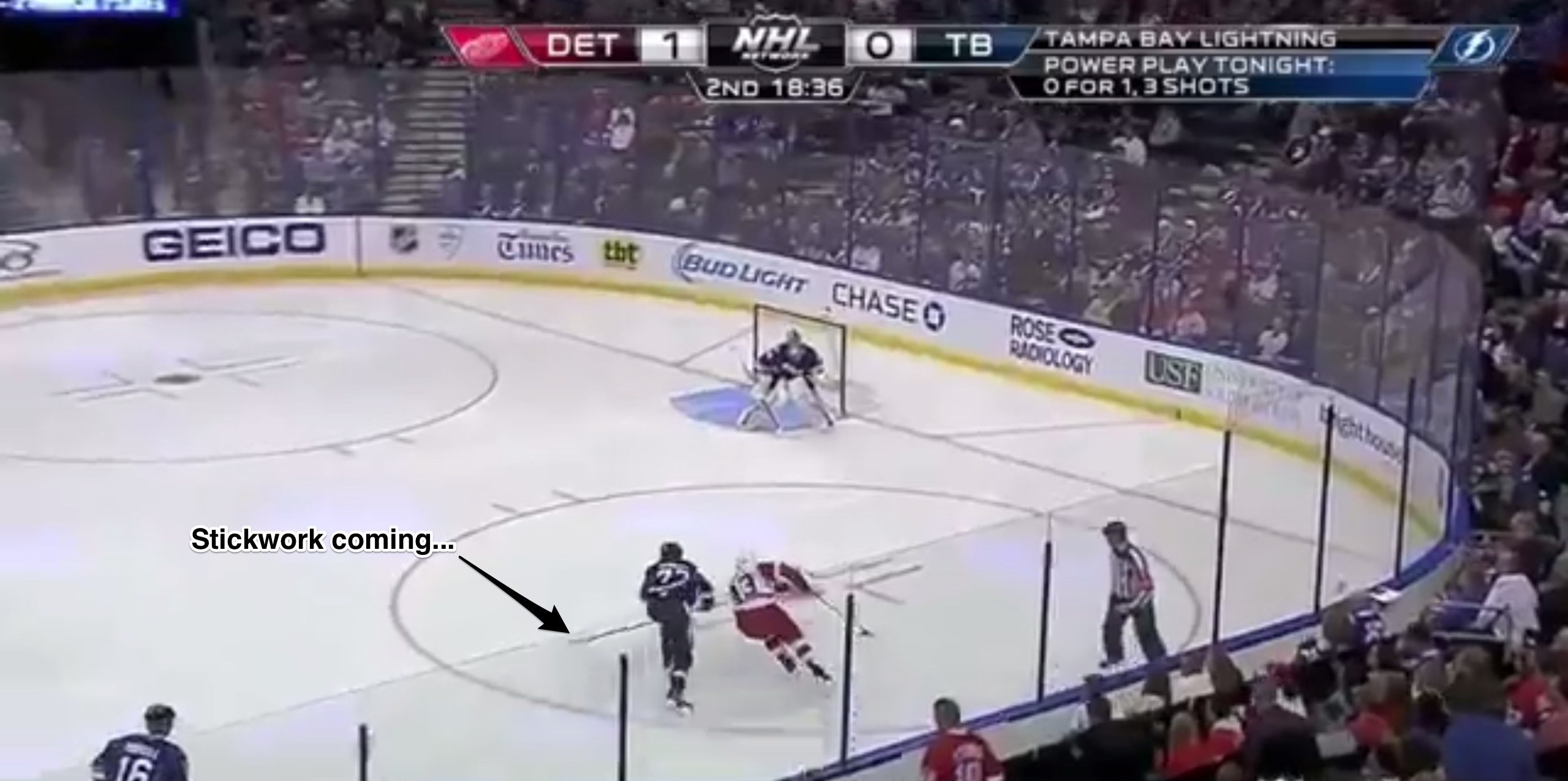 And below, look at the tremendous footwork of the 6-foot-6er before this great pass, which resulted in a penalty shot and eventual goal for Tampa.