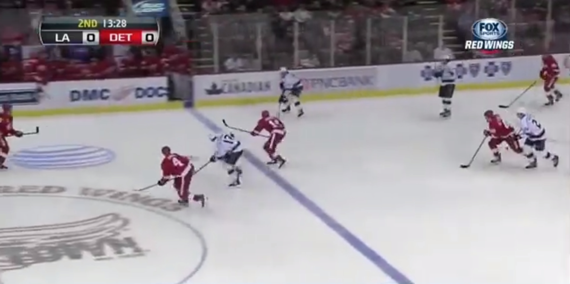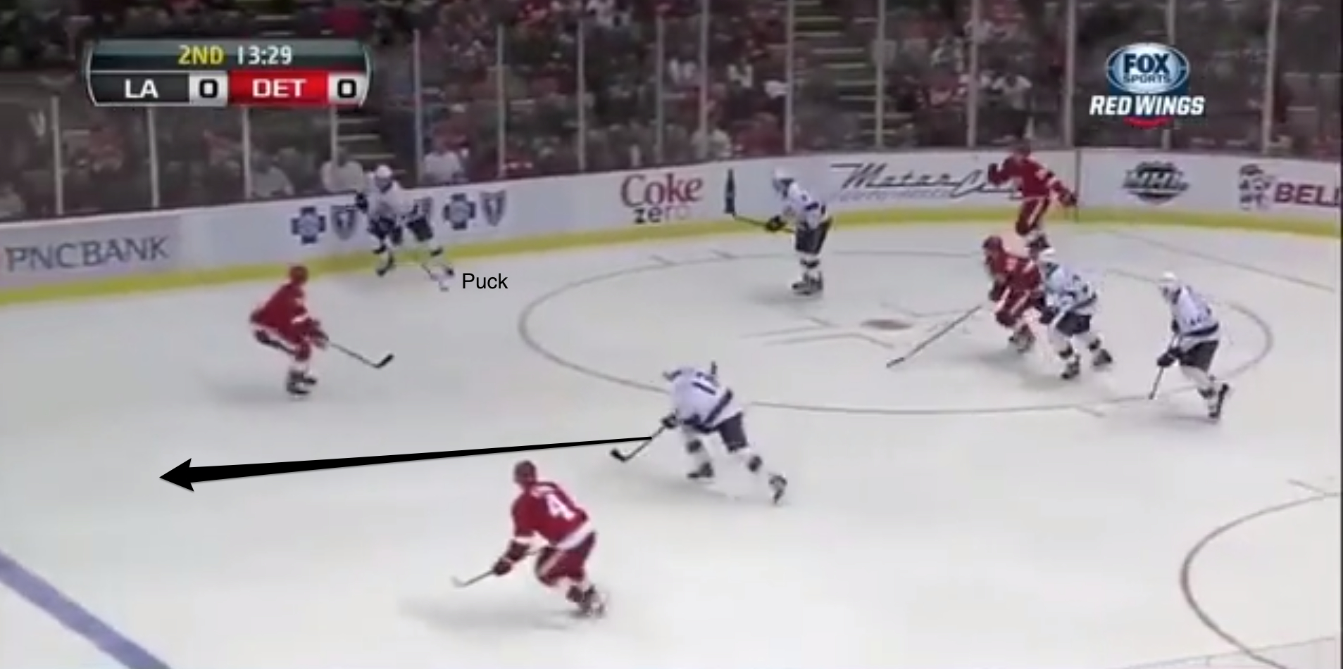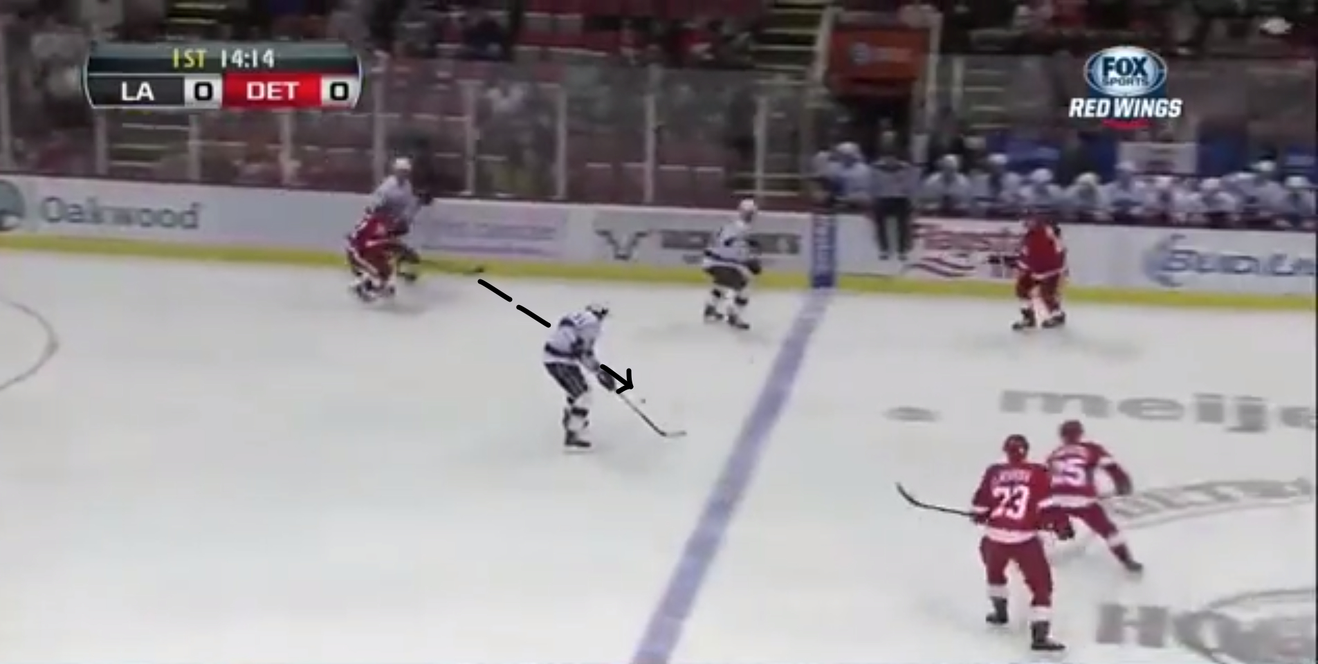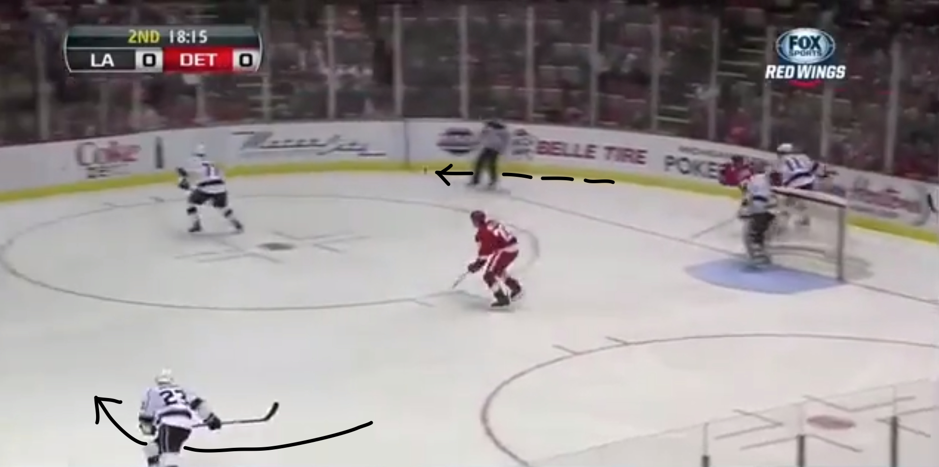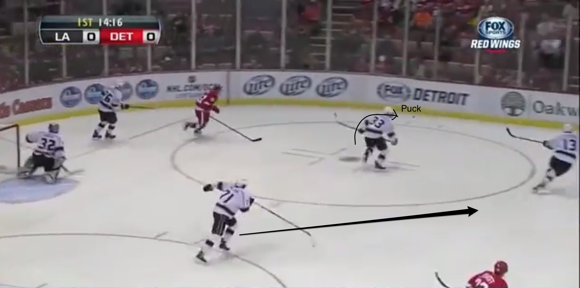 And finally, this highlights just how aggressively they want that weak side help. Dustin Brown starts to support the puck...