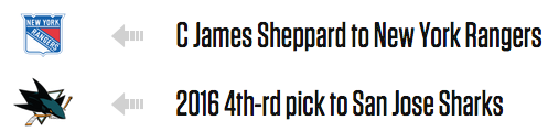 Depth at the center position is nice and all, but Sheppard isn't going to play ahead of Stepan, Brassard, Hayes or Moore. That means he'll be moved to wing, likely to take Stempniak's spot on the fourth line, while giving the Rangers some security if one of their centers goes down.