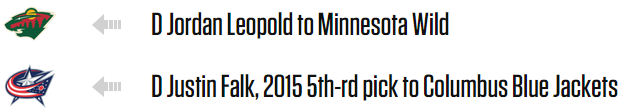 Something about Jordan Leopold makes teams think "Y'know, we should really acquire that guy," roughly a few months before thinking "Y'know, we should really saddle some other team with this guy." Also: Minnesota loves bringing the boys home - they now have five former University of Minnesota Golden Gophers on their roster (including Leopold, who won the Hobey there).