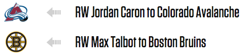 For some reason Jordan Caron could never quite make it work in Boston, but there's reason to believe he could still become a contributor, given his size and numbers (19 points in 23 AHL games). Boston is - I guess? - going into win-now mode with a team that doesn't look like it can win now, by acquiring a 31-year-old depth guy.