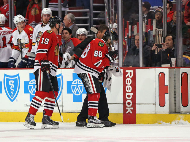 VIDEO: Blackhawks' Kane forced from game after being cross-…