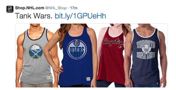 That was the marketing strategy briefly employed by the National Hockey League shop's Twitter account Wednesday evening, as summer wear featuring the cellar-dwelling Buffalo Sabres, Edmonton Oilers, Arizona Coyotes and Toronto Maple Leafs was advertised with the following tagline: