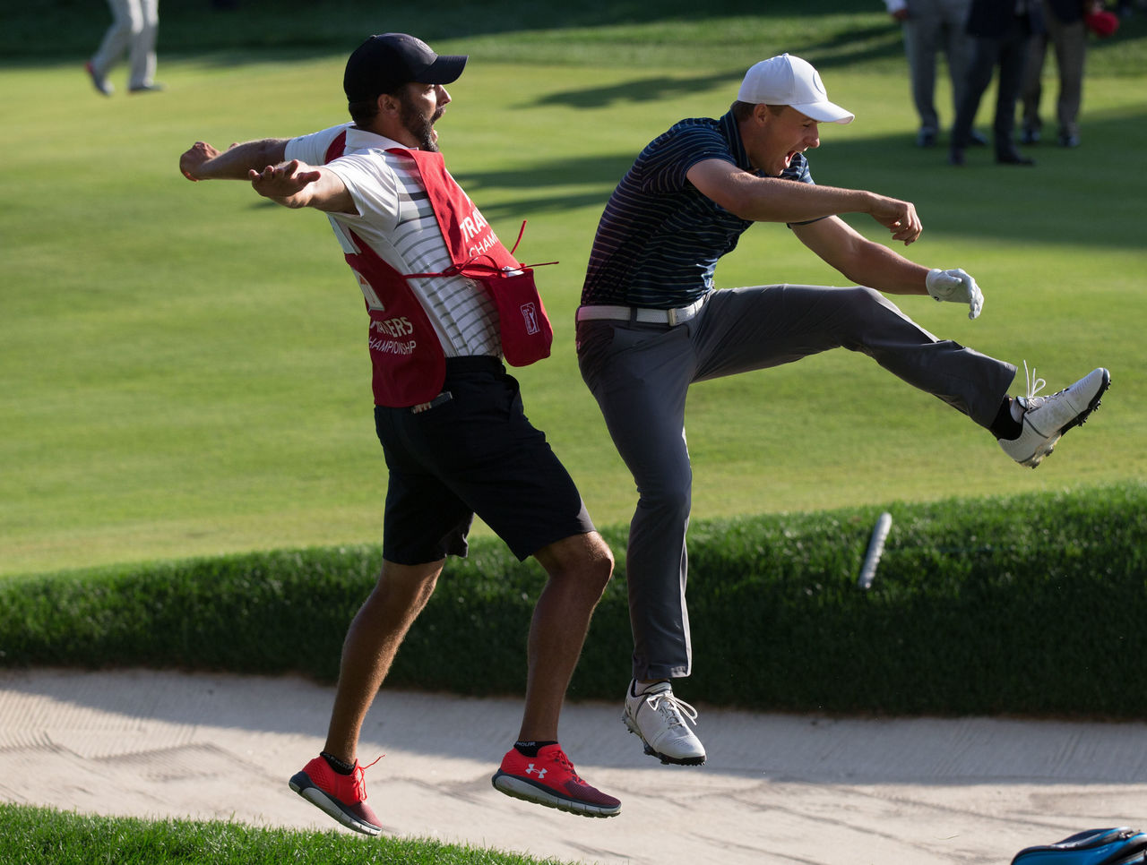 One start before his victory in the 146th Open Championship, Spieth provided another memorable Sunday on the links. The Texan went wire-to-wire for his second win of the season, but required an extra hole and a wacky finish to accomplish the feat. Spieth needed to get up-and-down from a greenside bunker at the 72nd hole in regulation to force a playoff with Daniel Berger - which he did. Just 20 minutes later, Spieth holed it from the same bunker for birdie, tossed his club into the air, and then went crazy with his caddie, Michael Greller.