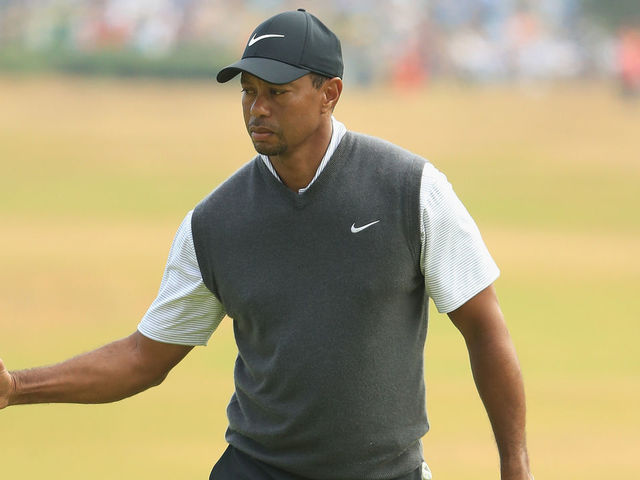 On the difficult three closing holes, Tiger bogeyed the 16th but made a remarkable par on No. 18 to save his round after nearly driving the ball into the burn.