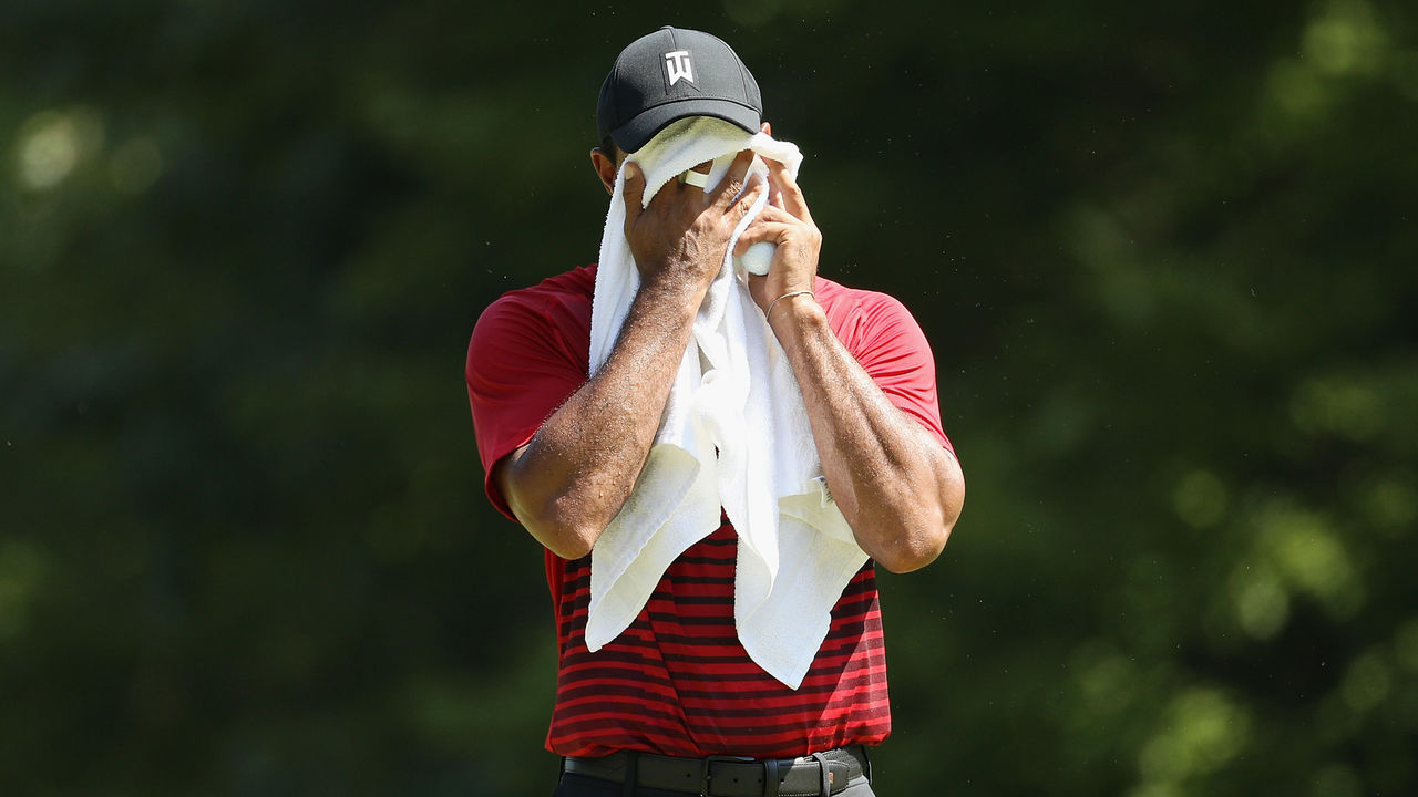 A birdie on No. 11 was quickly erased by a missed 8-footer on the 14th. At this point, Woods seemed to be slowing down, playing in a sweat-soaked shirt since the first tee.