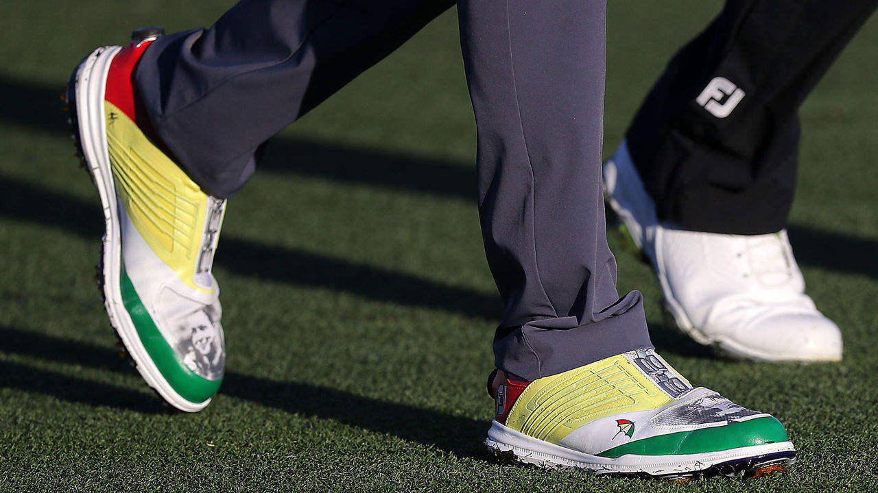And perhaps the most meaningful tribute, Palmer's grandson, Sam Saunders, dawned these colorful shoes with his grandfather's face on them.