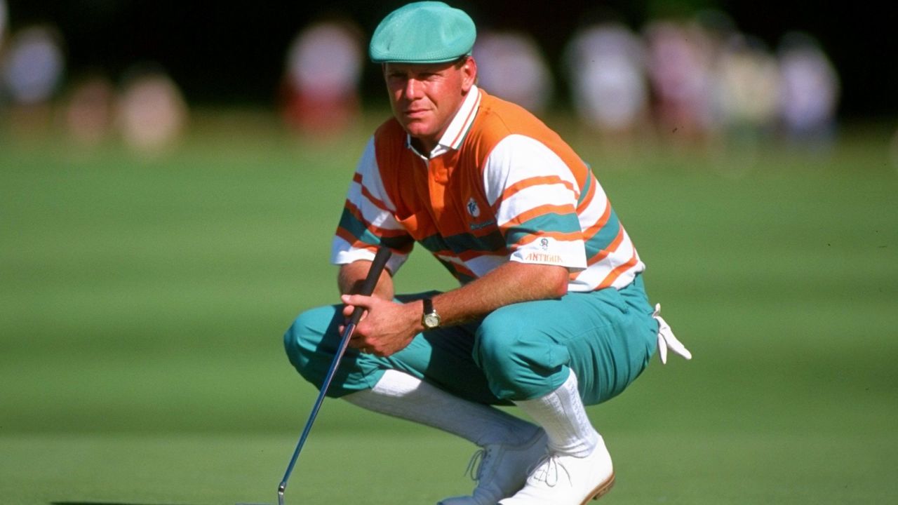 For a portion of his career, Stewart took on a rare sponsorship with the NFL. He wore team colors typically related to the geographic location of the weekly tournament, such as this incredible Miami Dolphins outfit in 1991.