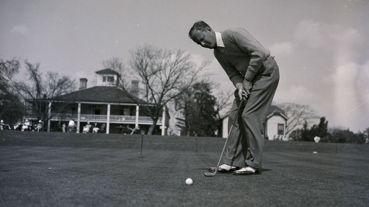 Smith putts on the eight green en route to victory in 1934.