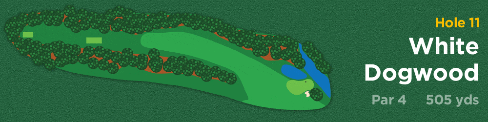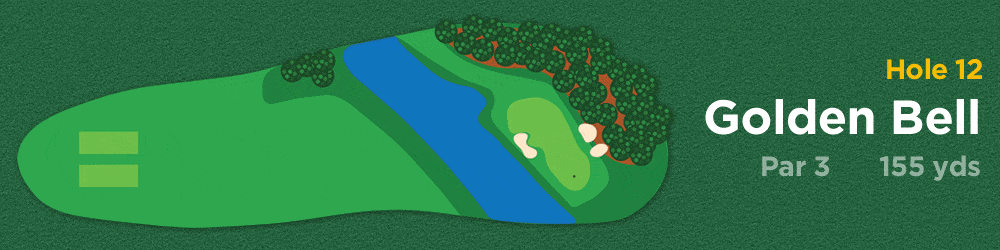 Migay’s take: ”Of all the changes made at Augusta over the years, reversing the nines was probably the best idea. The start of the back nine, holes 10-13 in particular, is incredible. It's a better mid-round stretch than a start to a golf course, for sure. The 11th is another massively epic hole, but it too has been comprehensively changed since the course was originally designed. The 11th originally opened as a medium length two-shotter played from a tee right of the original green. Now it's a massive par 4 measuring 505 yards from the Masters tee, which is back and left of today's green. The 505 tee was installed in 2002 and presents what is arguably the scariest look on the course. The scale of this picture is gigantic. The tee shot plays through a narrow chute of pines, over a crest. From there the fairway plummets another 50 feet or so down to the green in front of Rae's Creek. Not long ago, this hole was classically strategic … drive down the right side to leave a preferred angle of approach into the length of the green or, go left, and face a comparatively daunting approach that needs to flirt more with the greenside pond left of the putting surface. However, at the same time the 505 tee was installed, a forest of pines was planted down the right side eliminating that route. These new trees force tee shots left, eliminating the old strategy, forcing golfers to look at that pond … a tough hole made ever tougher."