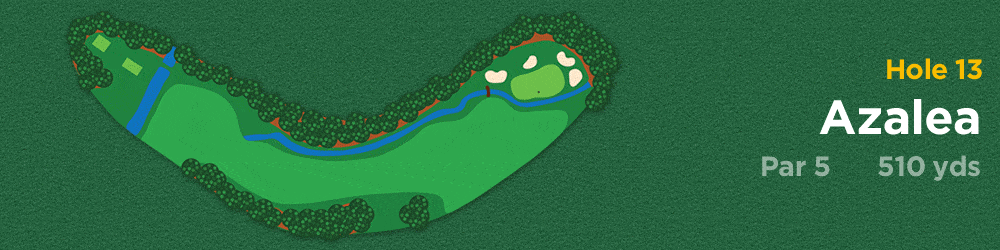Mingay’s take: "Here's another reason Augusta National is so good: golf’s most famous par 3 is followed by what's long been considered the world's best par 5. The 13th is another gorgeous hole, bending left around a corner guarded the length of the fairway by a tributary of Rae's Creek, which then swings right in front of the green. It was only a few years ago that the 13th was stretched to over 500 yards, when Augusta National Golf Club purchased a piece of land from neighbouring Augusta Country Club. Even as a sub 500-yard hole, the 13th was considered by many as golf's best par 5. There are four 'decorative' bunkers cut into the hillside behind and left of the green, but sand doesn't factor into the genius of this hole. The tee shot is very important. Playing left, close to the creek, leaves a relatively flat lie and shorter distance for the next shot … but that's a frightening line to take off the tee. Playing safer out to the right lengthens the hole and leaves a severe sidehill lie, with the ball way above a right-handed golfer's feet. This is particularly annoying because the angle and slope of the green prefers a cut shot, played from a hook lie. Bobby Jones described the second shot here as a 'momentous decision of whether or not to try for it … yet the reward of successful, bold play is enticing'. Today, the hole's short enough that I presume most of the world's best golfers probably consider laying up humiliating. This further complicates that momentous decision Mr. Jones referred to, these days. The 13th green is another where the slope and contour can work for or against players. It's really fun to watch golfers use this green to advantage, working shots from the left side all the way over and down to front right hole locations on Sunday of the Masters. Another smart design decision in relatively recent times was to lower the level of the water in the creek fronting the green to restore the possibility of recovery from this hazard. There's nothing more exciting than a great recovery shot and there might be more highlights of great recovery play from the Masters over the years than any other tournament in golf."