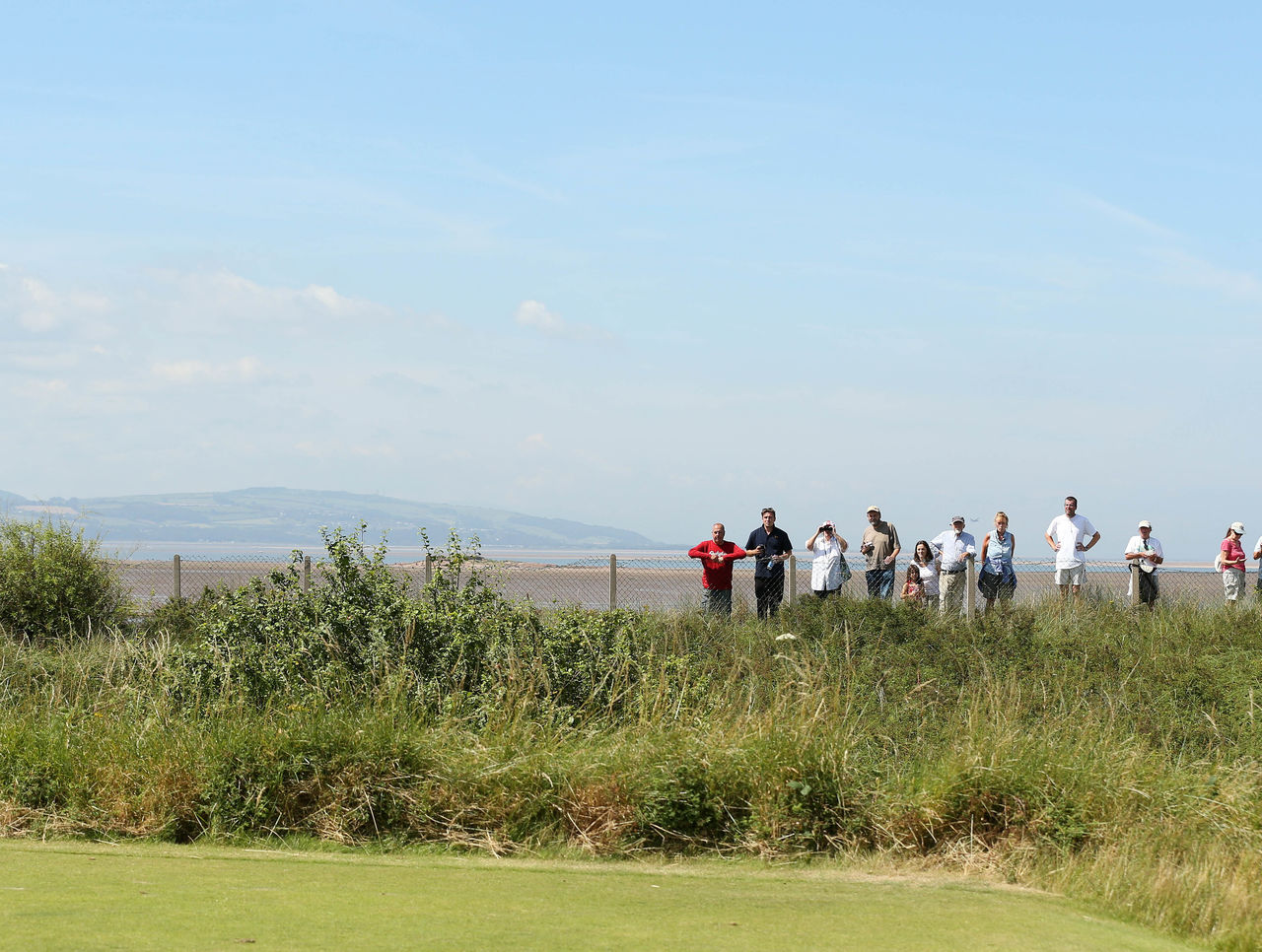 Fans watch from behind a fence just outside the course boundaries
