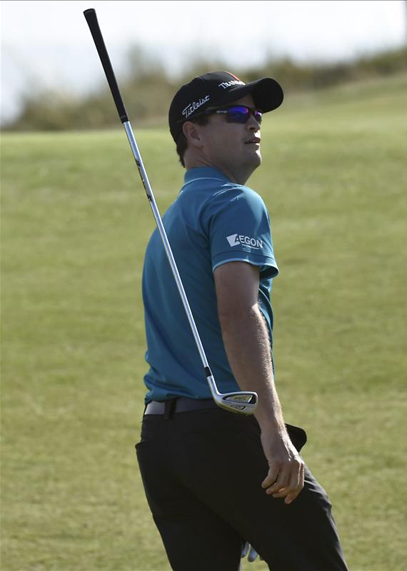 Adam Scott finishes his round in the late afternoon shadows