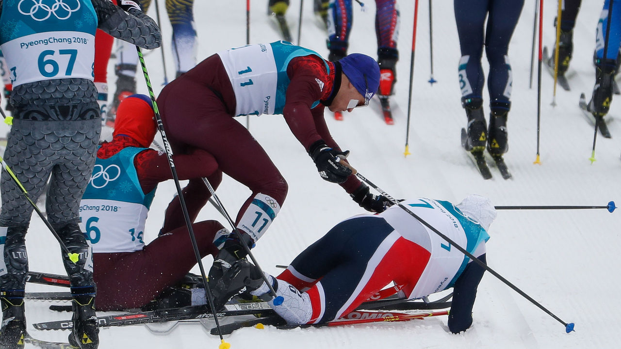 It was a disaster start for Simen Hegstad Krueger in the men's 15K x 15K cross-country skiathlon after the Norwegian took a tumble seconds into his Olympic journey. Unbelievably, Krueger overcame the rough start and passed 67 people en route to winning gold as part of Norway's clean-sweep of the podium.