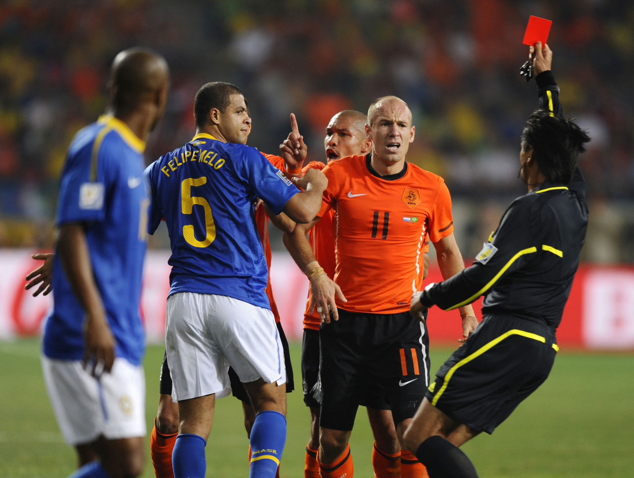 Most notably, Melo was the scapegoat when Brazil was eliminated at the 2010 World Cup, as he was sent off in the second half of the Selecao's defeat to the Netherlands in the quarter-finals. He was treated like a criminal upon returning to his homeland and even had to be smuggled out of the airport. "There's no way I'm the villain the 2010 World Cup," Melo said. "It was a collective mistake. When I was sent off, it was already 2-1. I accept my share of the blame." His words fell upon deaf ears.
