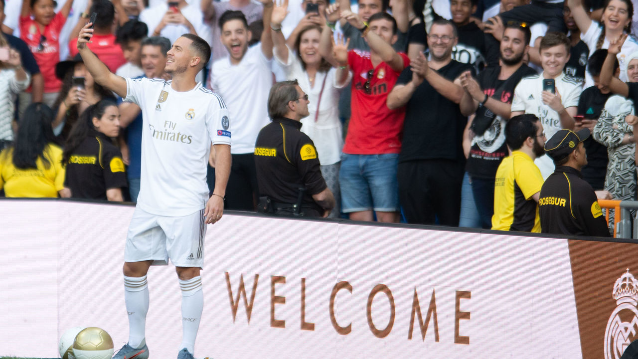 Following the photo op within the bowels of the Santiago Bernabeu, Hazard pulled a John Terry and swapped a suit for a kit, taking a selfie with some rapturous Los Blancos supporters and the back of a steward's head.