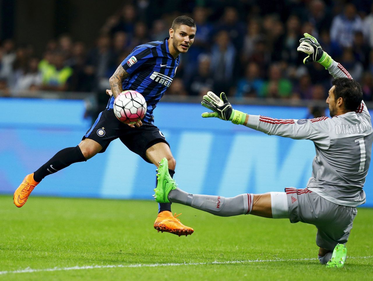 Lopez put his body on the line to make a similar save on Mauro Icardi at the end of the first half.