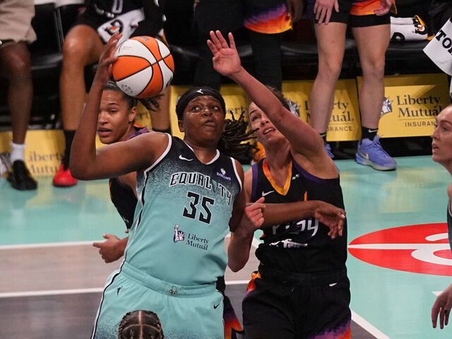 The 6-foot-6 center was drafted sixth overall in 2016, and played for the Connecticut Sun for six seasons before coming to New York as part of a three-team deal in January 2023. Jones is averaging 12.1 points and 9.6 rebounds this season.