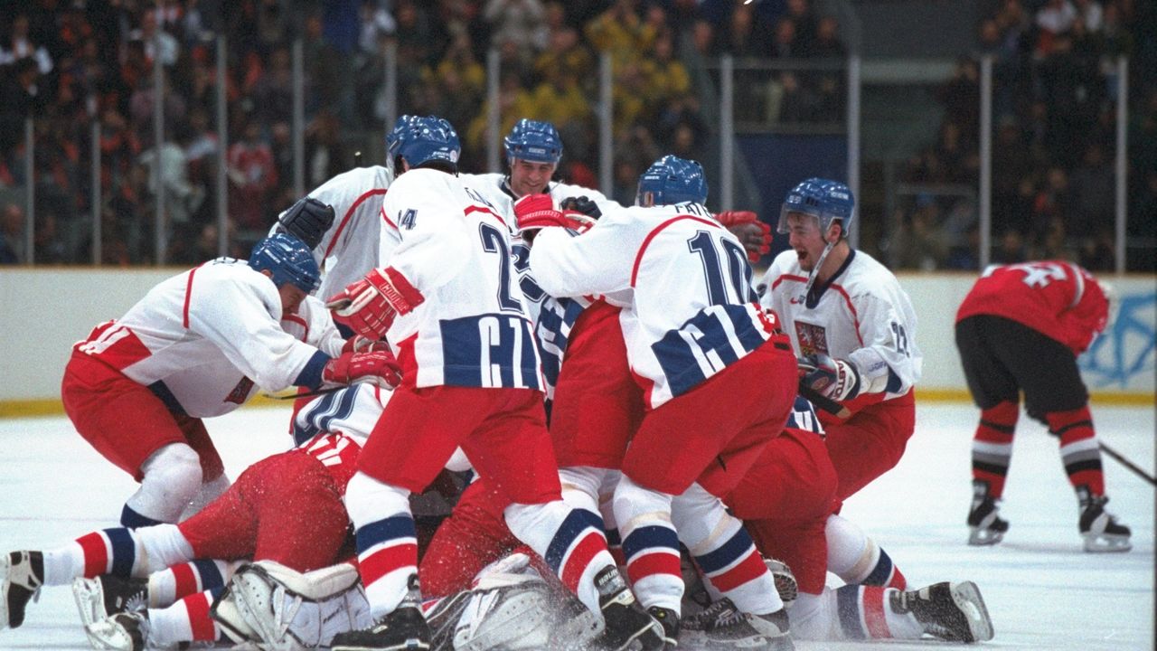 At long last, a gold-medal game without the Soviets or former Soviets. But still no gold for Canada. Sweden scored with less than two minutes to go to force overtime, then, after a scoreless period, the game was decided in a shootout. A young Peter Forsberg scored one of the greatest goals of all time on Corey Hirsch, and Paul Kariya was stonewalled on his attempt. This one really stung.