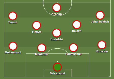 Iran tends to play a fluid 4-3-3 which at times does resemble more of a 4-2-3-1 or a 4-1-4-1. But regardless of what the teamsheet says, the one constant will be Alireza Jahanbakhsh creating trouble on the right, attempting to expose the opponent's left-back in isolation and set up his teammates with a cross, or cut in himself for a chance of his own.