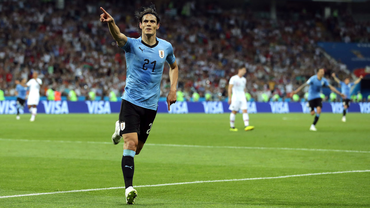 Not only did he score the two goals that pushed Uruguay past Portugal and into the quarter-finals, he did it in gorgeous fashion. His first tally was the result of a spectacular sequence in which he played the ball out to strike partner Luis Suarez and then ghosted in at the back post to get his head - or, more accurately, his face - on the end of a vicious cross.