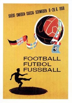 Many of the early posters featured displays of the globe or the flags of nations taking part in the World Cup, but Sweden captured it best when they produced this classy bit with a scarf featuring the flags of various countries wrapped around a soccer ball as it hovers above a player in its shadow.