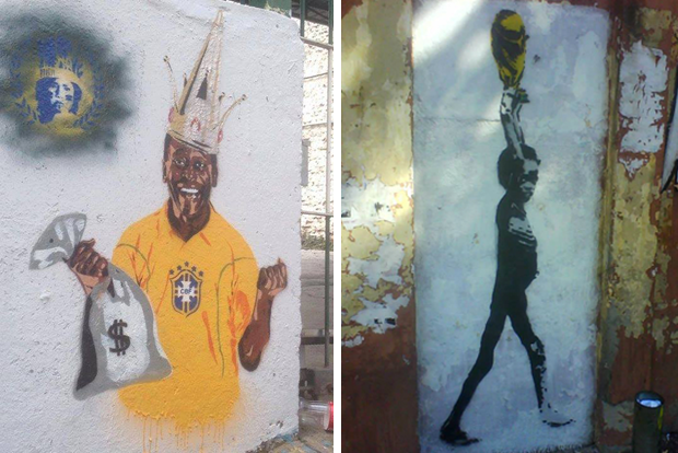 There have been protests in Brazil, and numerous works of graffiti, voicing their displeasure. Here are some of the best (from this imgur album):
