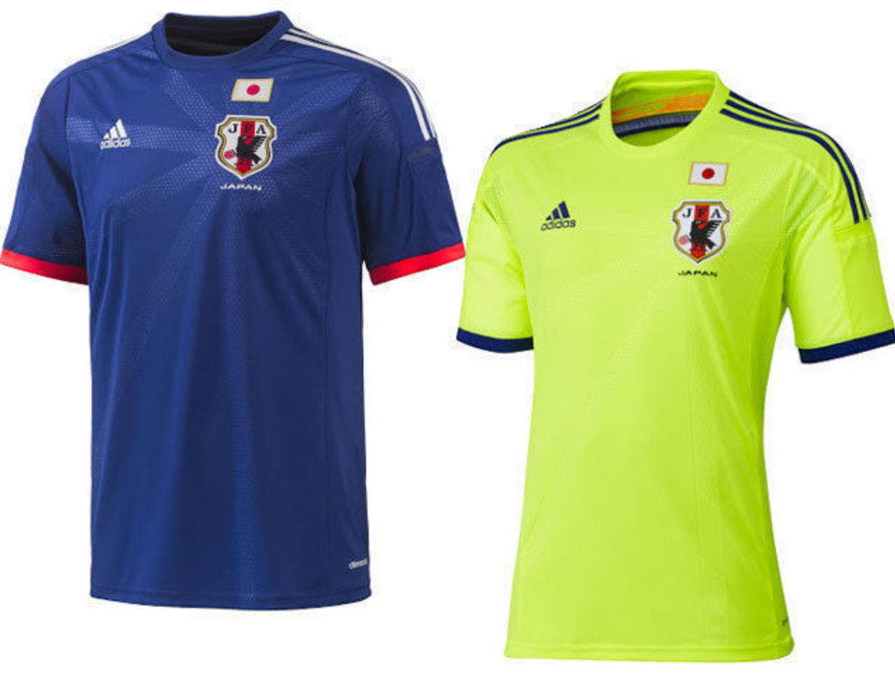 The secondary kits, typically white for Japan, are now fluorescent yellow ("it's called 'electricity'!" - says an adidas official reading this) with navy blue trim. The "electricity' color is meant to represent Japan's "electric" youth. In case you missed yesterday's post, Spain will also wear this color but thankfully only as a trim on their secondary jersey.