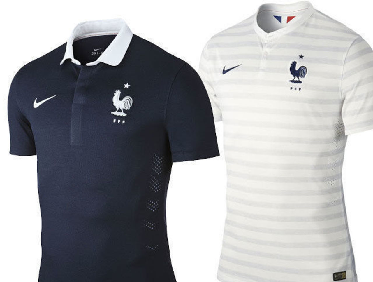 France is taking a step back in time with their 2014 kits, the France Football Federation and Nike teamed up to create a look we hadn't seen the French side wear anything like since the 1958 Cup. The primary kit is denim blue with a white collar, the Nike logo on one side and the FFF's rooster logo on the other. A single white star above the rooster symbolizes France's victory at the 1998 World Cup.