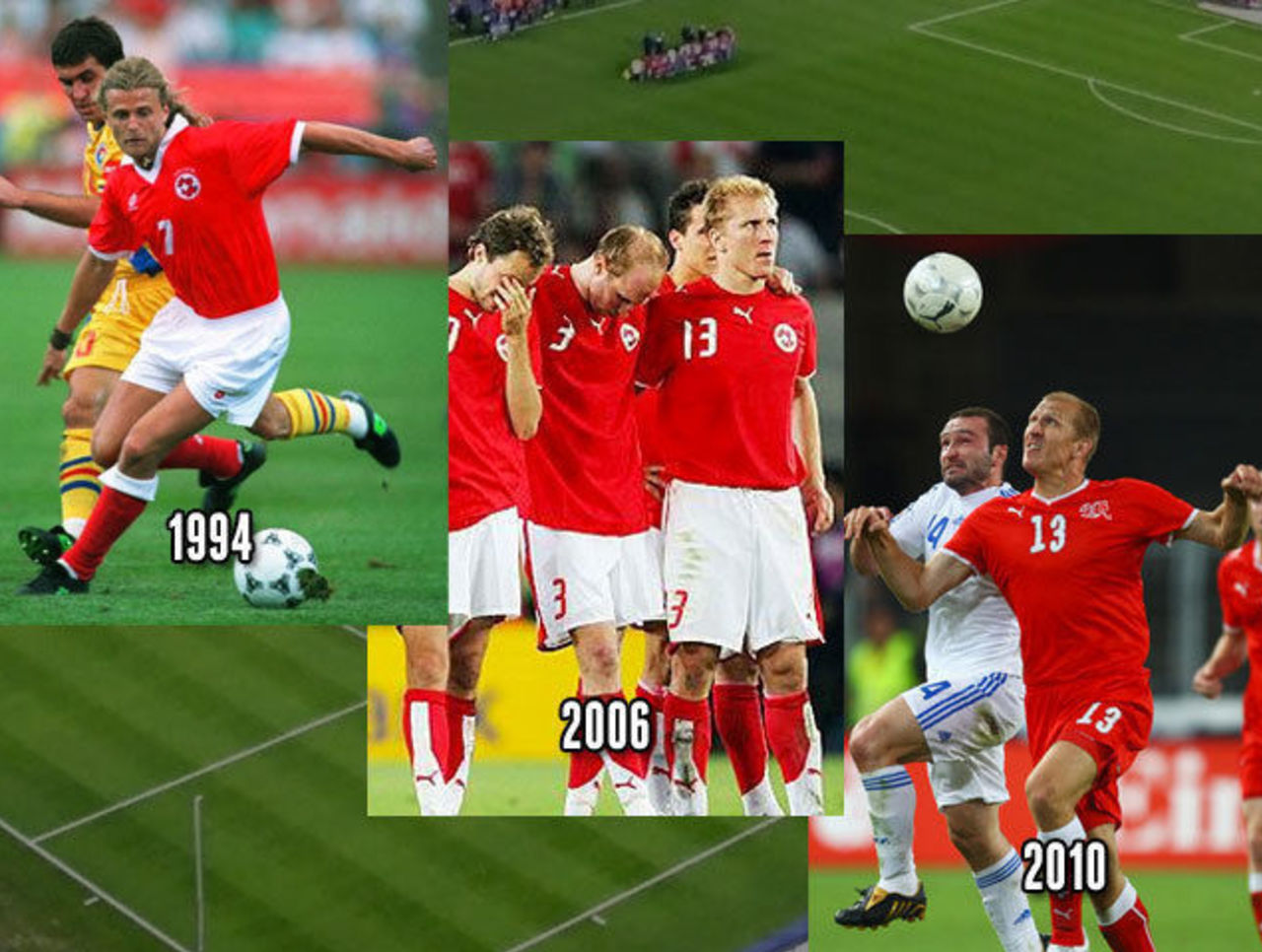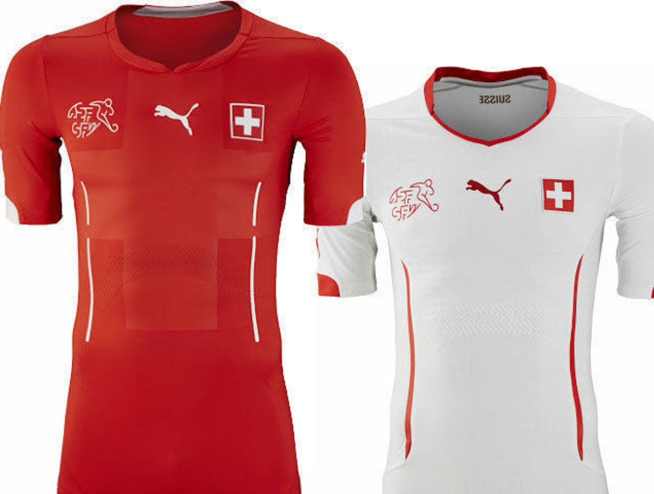Warning, Puma templating alert. The Swiss uniform designed by Puma follows the same template they used in this tournament for Italy, Uruguay, Chile, and Algeria - the similarities include the piping up either side of the jersey and a little semi-circle on the cuff of each sleeve.