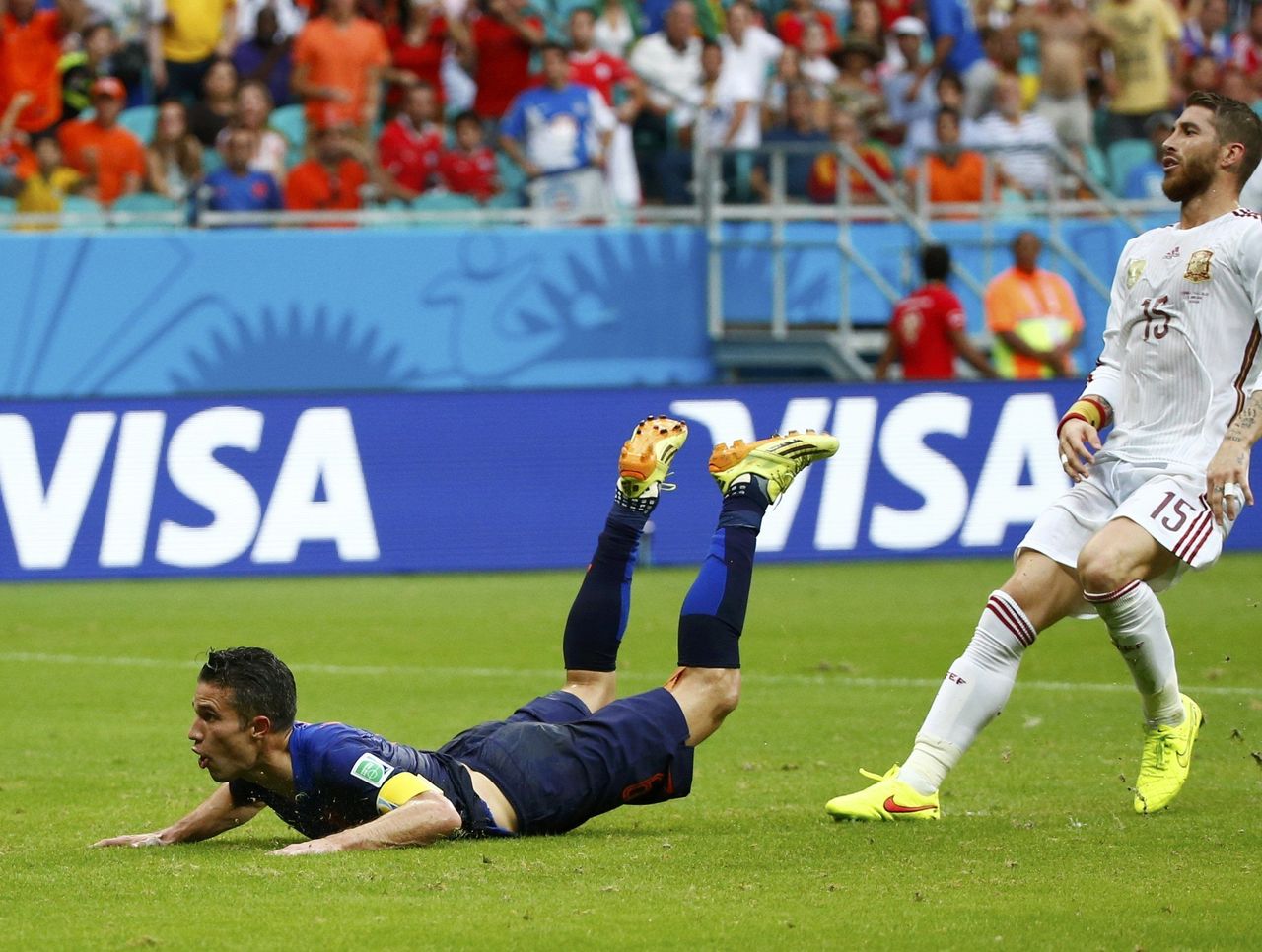 This is the goal of the World Cup so far: Robin van Persie tied it up for the Netherlands in their opener against Spain with this magical diving header. He also made a little history, according to ESPN. The goal was 17 yards - the longest headed goal "measured at a World Cup" since 1970.