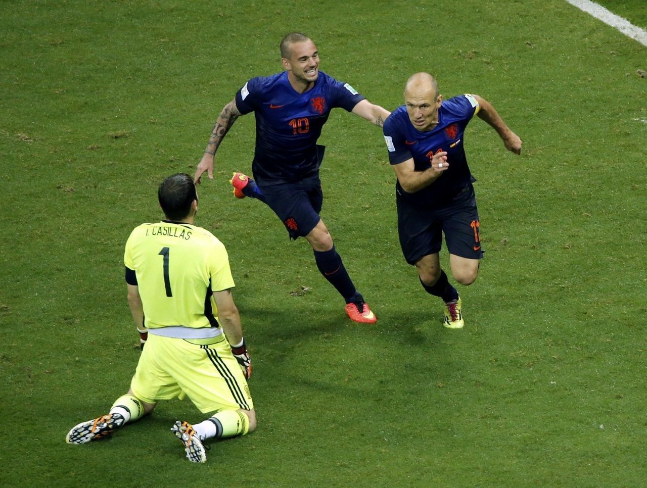 GOAL! Arjen Robben (NED), 53 min. Robben brought down a beautiful cross from Daley Blind, shifted the ball from his right foot to his left, and fired past a helpless Casillas.