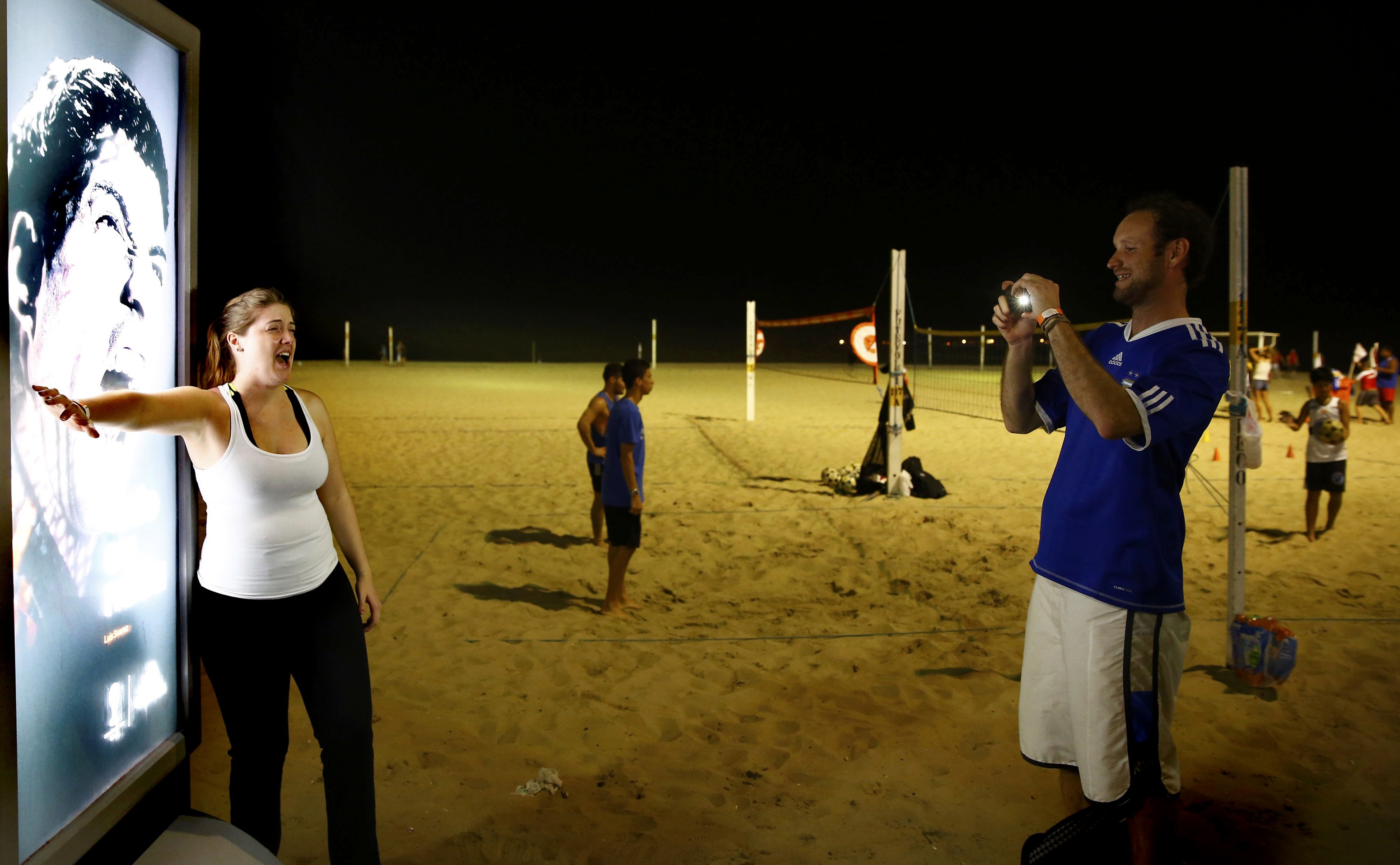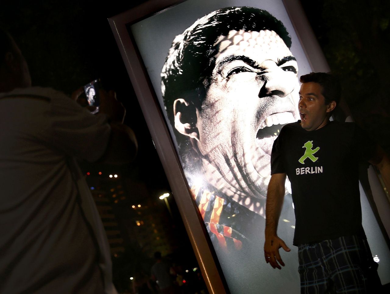 Never has this been more evident than on Copacabana beach in Rio de Janeiro where an advertising placard for adidas features Uruguayan striker Luis Suarez — he, of scoring lots of goals and biting lots of opponents fame — not ironically bearing his teeth.