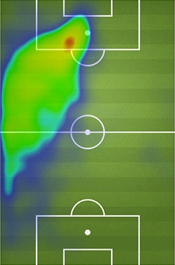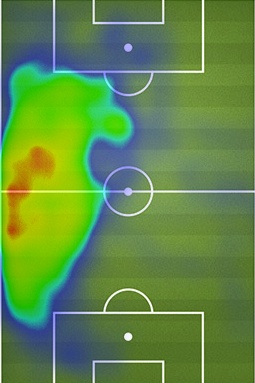 Though I’m generally not a fan of heat maps, we can see here the switch in Zabaleta’s general position from Switzerland to Belgium: