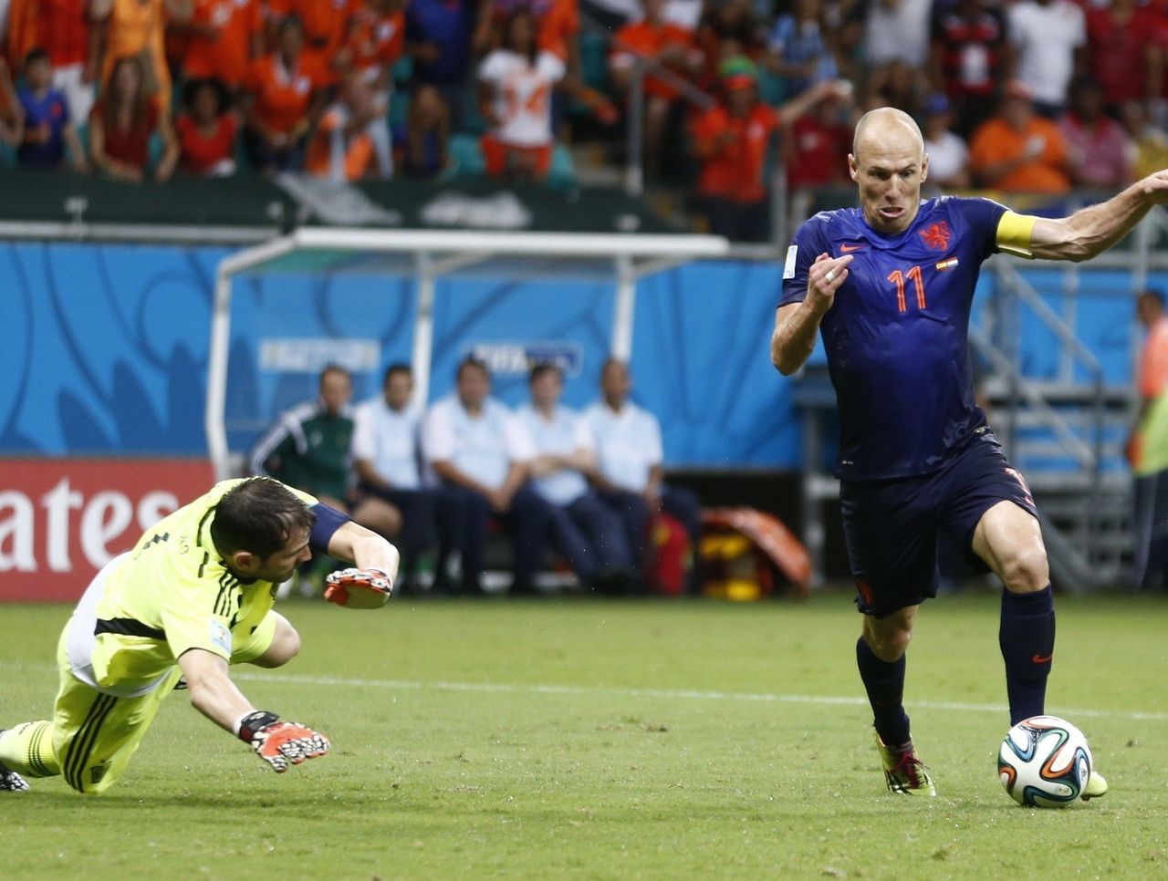Netherlands forward Arjen Robben has traveled almost 80 kilometers after seven World Cup matches.